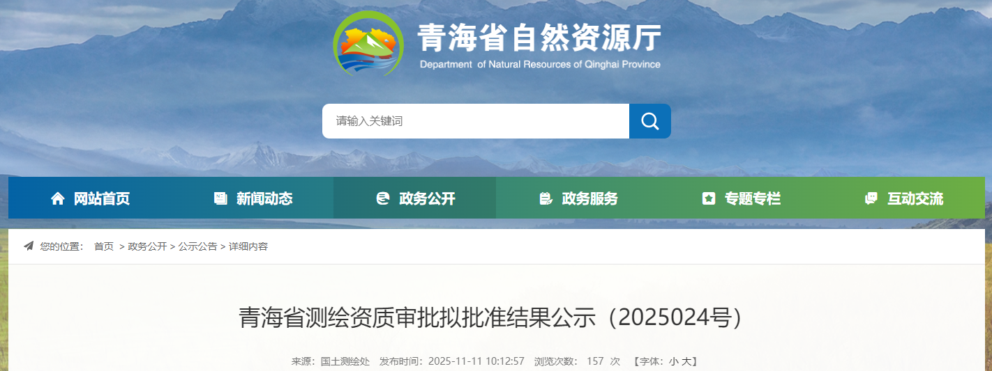 青海绘通空间科技有限公司等2家测绘资质审批拟批准结果公示(2025024号)